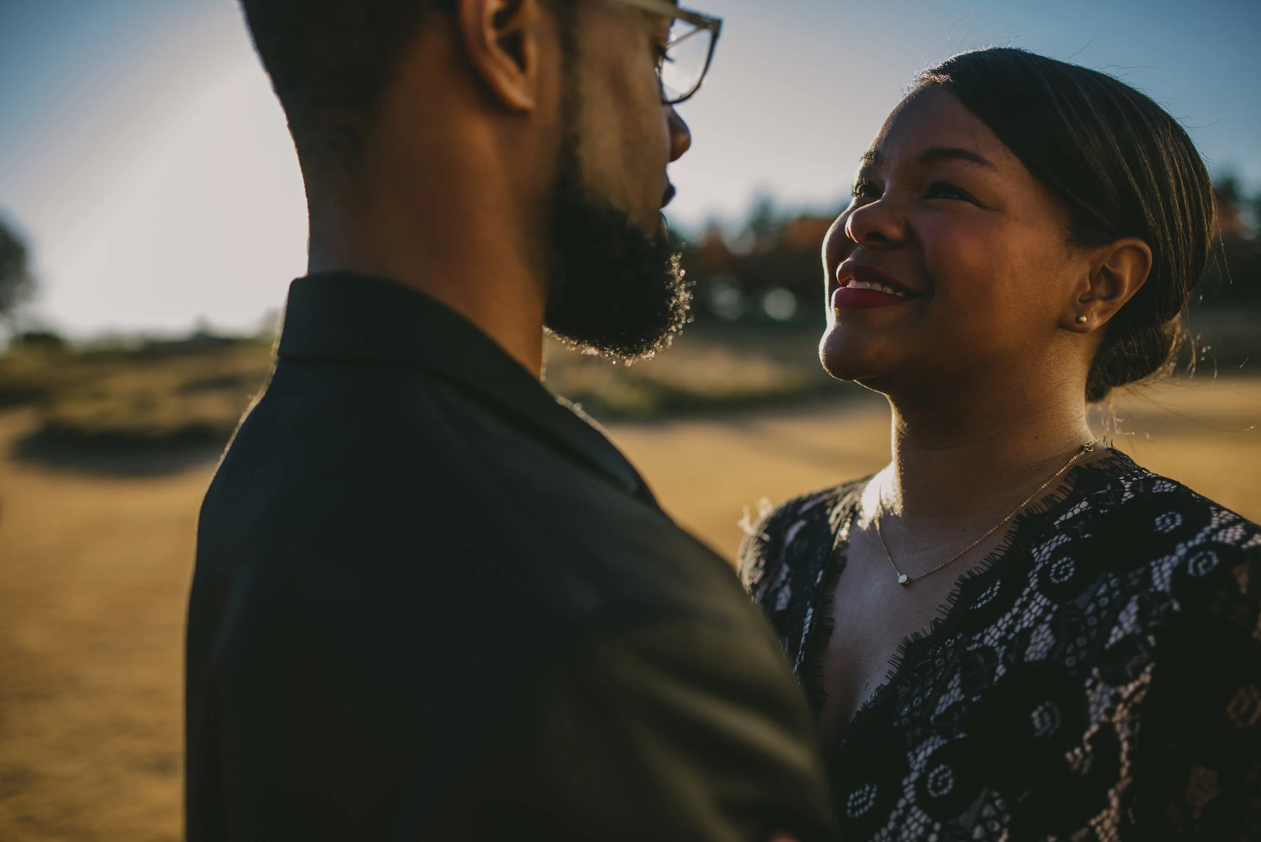 Some of the beautiful North Carolina golden light during Jade and Daniel's North Carolina Museum of Art engagement photos